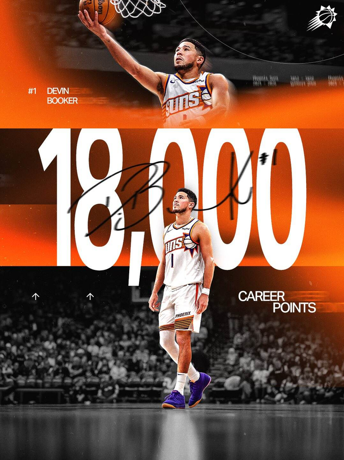 据统计,本场比赛过后,布克NBA生涯总得分正式突破18000分大关。值得一提的是,布克也是联盟历史上达成18000分里程碑第三年轻的得分后卫(仅次于科比&乔丹)。(NBA官网)